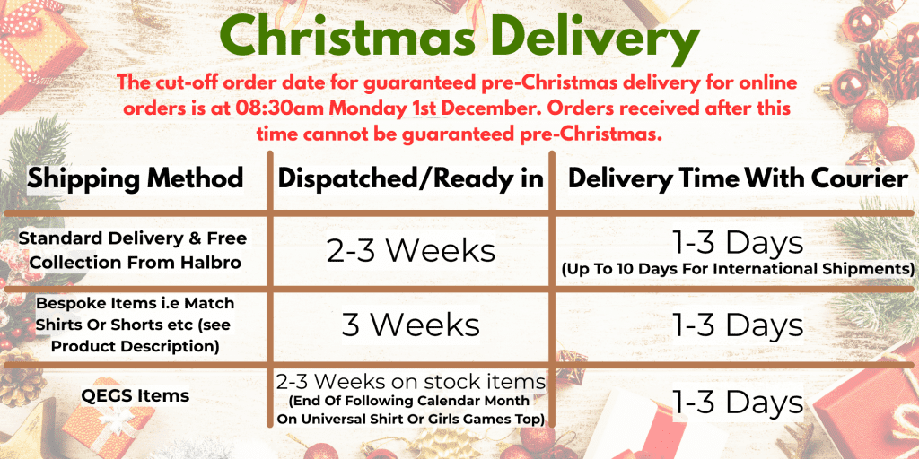 The cut-off order date for guaranteed pre-Christmas delivery for online orders is at 08:30am Monday 1st December. Any online orders placed after 08:30am Monday 1st December CANNOT be guaranteed delivery before Christmas. Click here to read more!