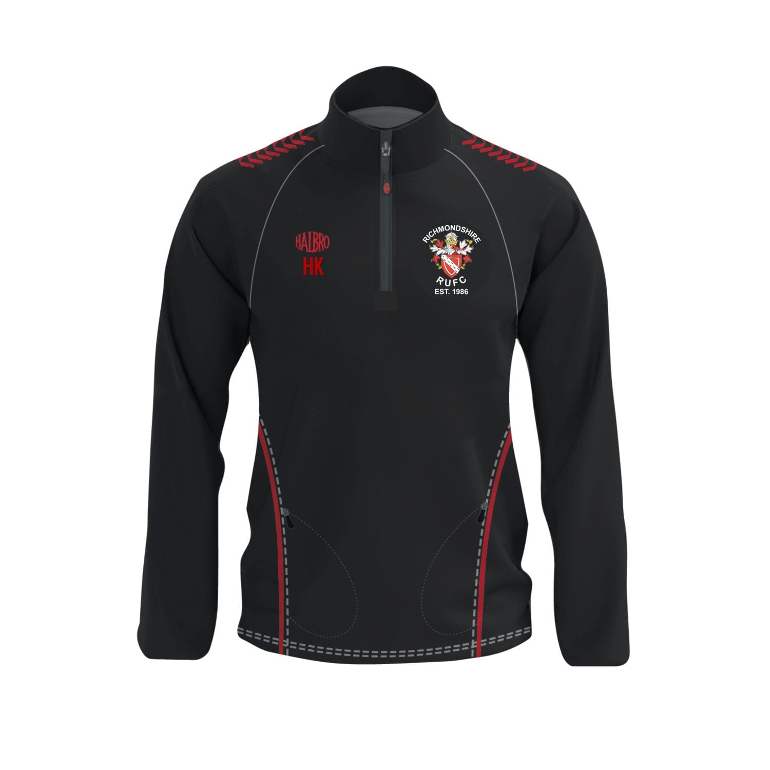features 2 side zip pockets.